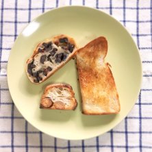 全部ちょっとずつ食べたいからこんな朝。 *松明角食 卵、乳、バター不使用と思えない自然の甘み✨ 生でもトーストでも美味しい *オリーブとグリュエール 中にブラックオリーブゴロゴロ。外だけかと思ったら中にもチーズ🧀 ピンクペッパー📍がいいアクセント。ワインに合いそう🍷飲めないけど😅 *ホワイトチョコマカダミア これも切った面から丸ごとマカダミアがたくさん溢れるー。 固めだけど軽い生地。マカダミアも甘みがあって香ばしい😍