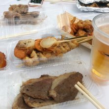 北海道フェア最終日 蝦夷鹿ステーキ ホタテ串 ザンギ 芋もちなど、北海道グルメがいっぱい。 A5ランクの和牛ステーキ4000円が閉店間近という事で1500円! エクストラコールドと♪