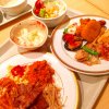 本日の仕事終わりごはん 会社近くの喫茶店 ランチタイムは会社の偉いさん方が来るので 避けた時間に行くと小鉢の種類が〜〜(泣) メイン+小鉢2皿+みそ汁+ごはん大🍚 (今回はチキンカツを) 550円でお腹いっぱい((o(^∇^)o)) 時間が合えばありなランチです(^^)