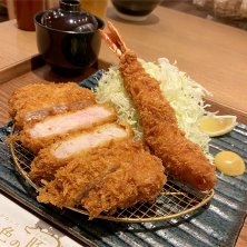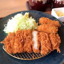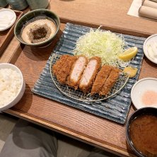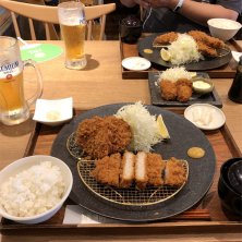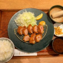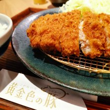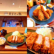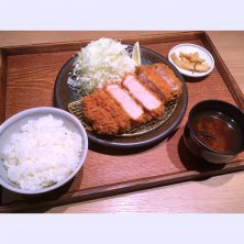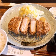 羽田空港と福岡空港に存在するロイヤルホールディングスグループの豚カツの店、黄金色の豚の四元豚のとんかつ御膳。 豚カツは、アメリカのアイダホ州から届けられた最高品質のブランドポークを使用し、大麦と小麦を主にオレガノハーブを配合した良質な肥料でじっくりと育てられた四元豚を使用しています。 ご飯、しじみの味噌汁、漬物と摺り胡麻がセットで付いた定食メニューです。 空港での早番の仕事帰りに寄って食べに行きました。