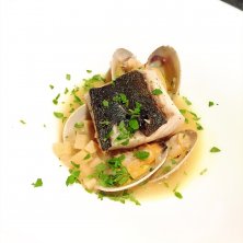 バター風味にアサリの出汁がよく出て 上には ソテーされた鰆が乗っかっていました 春の味 外はカリカリ、なかはフワフワ