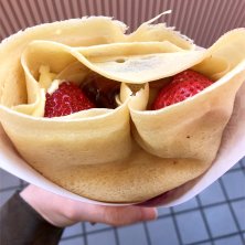 苺カスタードプリン 今日はどうしてもクレープが食べたくて。昔ながらの普通のクレープ屋さんですが。小学校の頃を思い出しました! 閉店間際だったからか、いちごが丸々大量に入ってて嬉しかったです。