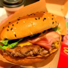 培根安格斯厚牛堡。食べやすい包みで好感、美味しかった。
