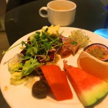 宿泊先での朝食。 今日もたくさん食べるから、サラダとフルーツだけをチョイス!