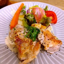 青じそクリームのチキンソテー🐔 クリームソースめちゃうま~♡ そして選べる小鉢も1つ1つ丁寧に美味しく作られてる🍴 今日はおばちゃん?ママ友?グループがいて、ハズレの日(うるさくて)なのがザンネン😓こればっかりは来てみないと分からないからねー😇