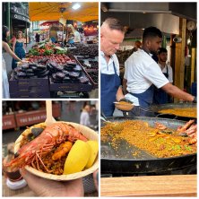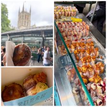開場に合わせて“大英博物館”を見学し、娘の友達の待ち合わせ場所に向かいました! マーケットは平日だと言うのに凄い賑わいで✨美味しい物がいっぱい😍 軽く二品をチョイスし、皆んなでシェアしました❣️