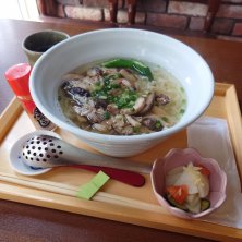 江ノ島膳 炭水化物 × 炭水化物は嫌いだけど、前回たくさんの人が頼んでて気になって♡ お年寄りの方々はペロッと食べてたけど、けっこうボリュームがある(•ө•) 負けた感www 何を食べても美味しいなぁ~(*´˘`*)