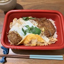 ロースカツ丼 昨日の晩ごはん。 冷凍ご飯がなくなったので 晩ごはんを持ち帰り。 鯉川筋の今八商店が 閉店セールしてて(全品半額) いろいろ野菜を買いました。 わりと利用してたので残念😢