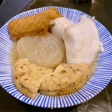 おでん、大根、はんぺん、がんも、ごぼう巻き、餃子巻き、卵