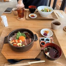 目的の先着10名半額極み丼😍 ¥3,800-→¥1,900- ローストビーフが美味しすぎる😭💕 あがの姫牛ステーキ ・ 鰻 海鮮チラシ ・ あがの姫牛ローストビーフ この四種類が乗ってました👏🏻💕 弟はローストビーフ丼🍖