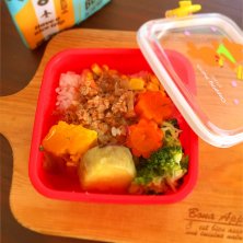 1歳4ヶ月14日お昼のお弁当 ♡ミートソースごはん ♡ブロッコリー&コーン ♡さつまいも&かぼちゃ&人参 ♡薬ヨーグルト ♡バナナ半分 久しぶりに人参、お花型にしてみました♡ 今日は@ototthi ちゃん親子と@minaboulangerie ちゃん親子と動物園デート♡娘は今年入って4回目の動物園!いいペース(*^^*) 今日はotoちゃん娘とうちの娘との絡みがたくさん見れて嬉しかった!みなちゃんの息子ちゃんを取り合うのも時間の問題だな笑。