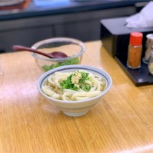 かけ(ひやあつ)本当は2〜3杯(小)のうどんを食べようかなと思ったのですが、ヘタレチャリダーの私には激坂の連続で、着いた頃には「ご注文は?」「水を…」状態でしたので、ゆっくりと頂いたが旨くてチュルチュル〜。やっぱ2杯くらいにしとけば良かった。笑