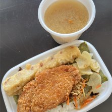 コンビニに野暮用ついでに、のり弁テイクアウト🥡🍱 とん汁付き😊
