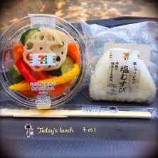 日曜日の昼ごはん。 初めて行く現場近くのセブンイレブンで購入。 スマホナビ見ながら行ったら変なナビになって遠回りしたので待ち合わせ時間に間に合わせる為に これだけ。 作業終わったらまた食べます😅