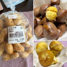 柏の栗も負けてない🌰 今日は圧力鍋で蒸してみたんだけどめちゃくちゃ甘くて美味しい😋 600円だったけど笠間へ買いに行くより安い。 落花生もB級品とは書いてるけど安い。 八街のも売ってたけどこの倍くらい入って同じ値段だった。小粒のだけど。さすが八街だーって感心しました🥜