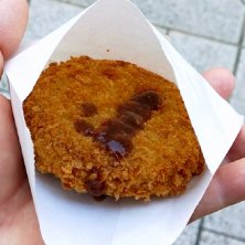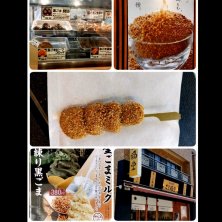 杵つき金ごま ごま福堂では「胡麻インストラクター協会」認定の「セサミマイスター」が専用の杵と臼で突き上げる風味豊かな「杵つき金ごま」を看板商品に様々な胡麻関連商品を取り扱っています。 店頭で、ごま餅やコロッケ・ごま団子が食べれます。 どれもごまの風味が凄いです。