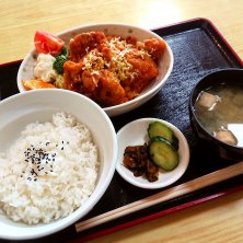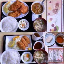 母は埼玉のフリマへ。寒い小雨。兄と車でランチへ。人気店、今日は比較的空いていて入れた。 唐揚げ定食、ちょこっとカレー、カキフライ定食。飲み物はセルフ、ほうじ茶、ルイボスティー。 ボリュームたっぷり、おいしかった。 駐車場には花などがたくさん咲いていた。 帰宅したら、母が帰っていた。 昨日足利市駅で買った大麦ダクワーズのマロン、ルイボスティーと。 母が友達からお土産でもらった琵琶湖のえび煎餅。