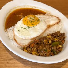 【葉もれ日のhalf & half curry】 #スパイシーチキンカレー #キーマカレー #目玉焼きトッピング 古民家カフェで金カレ〜♪ #金曜日のカレー #金カレー #キーマカレー #古民家カフェ #古民家リノベ #葉もれ日 #葉もれ日カフェ #浅草橋 #蔵前 #東京カフェ巡り #curry #spicychickencurry #keemacurry #hamorebi #asakusabashi