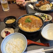 風邪がだいぶよくなり、外食。 しそチーズかつ盛り合わせ(❁´◡`❁) エビフライも入ってる♡