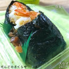 帰宅して夜食(╹◡╹) 天むす 2個で240円税込(╹◡╹) 美味しい(╹◡╹)