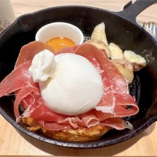 ランチセット 生ハムとブッラータチーズのフレンチトースト ランチタイムのイートイン限定メニュー!生ハムとブッラータチーズとフレトーとか好きな要素しかないし😍コーヒーと一緒に。美味しかったぁぁぁ テイクアウトでいくつかドーナツ買います🍩