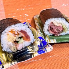 恵方巻 夜の部 海鮮恵方巻き ローストビーフ恵方巻き 大変! 気が付いたら、0時を回っていて 日付けが変わっていました😰 今から、大急ぎでいただきます😋