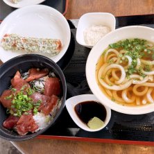 奥様注文のうどん屋さんのまぐろ丼(とろろ付き、うどん付き)900円! このメニュー、前からあったかなぁ すごく良い!と言ってました😊
