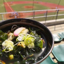 会社を休んでわかめそばを食べに来たら、野球やってた😆
