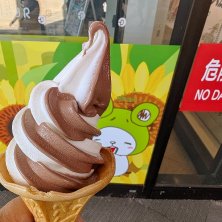 常陸の郷牛乳を使用した。 ミックスソフト🍦 暑すぎるて撮影中に曲った。