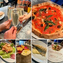 《3月5日(土)のディナー》 お友達の作ってくれた美味しいランチの後は、主人としっぽりピザディナー。 ここ、本格的なピザ窯があって、ラッキーなことにカウンターに座れたので、目の前でピザ職人の技をツマミに飲みました🍷✨ 生牡蠣にクジラのカルパッチョ。 チーズカツレツとトマトソースピザ🍕♡ お昼にもシュワシュワを呑んで、そこそこ食べたのに何故かお腹にスルスル入っちゃう〜❣️ 今日は美味しいものたくさん食べれて幸せでした❤️