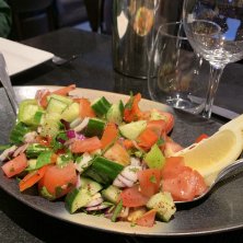 まずはサラダをオーダー。 日本と比べてかなり生々しい野菜ですが、でも美味しい☆