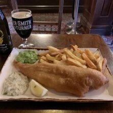 本場のフィッシュ&チップスを食べてみました( ˘ө˘ ) 揚げたてなので割と美味しい。そして量がすごい!一人では食べきれないです(^^;;