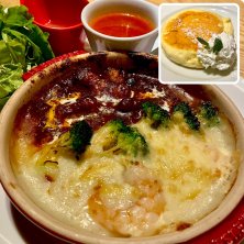 昨日の夕食(⌒‐⌒)何故か?ドアップ(笑)コレじゃわかんないだろうけどジャンバラヤです。お肉久し振りに食べたいと思ったので選んでみた。それにしても毎日寒い!だから体がお肉や辛いものを欲したのか?お初店舗。フレンチトースト本日終了‼️へぇ~食べてみたかったわ。それにしてもお店の看板ロゴが可愛くて取りまくったわ。ステキっ♪