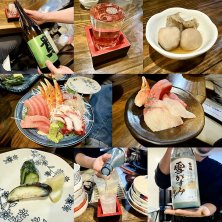 早い時間に、居酒屋飲み。 ささっと飲んで撤収‼︎ 砂肝バター 牛すじ煮込み シマアジのお刺身 生だこの唐揚げ セリおひたし