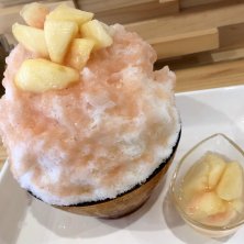 【桃みるく かき氷】 食後のデザートで桃活&氷活〜♪ 天然氷のかき氷はふわふわやぁ〜!(๑◕ˇڡˇ◕๑)! #桃活 #桃みるく #桃みるくかき氷 #かき氷 #カキ氷 #氷活 #日光天然氷 #カフェ #コハクドウ #kohakudo #shavedice