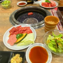 カルビとハラミセット ・国産牛カルビ ・国産牛ハラミ ・白ごはん ・スープ ・サラダ ・特製ピクルス ・キムチ ・杏仁豆腐 美味しかったです。 広島県広島市西区 焼肉一番 団楽 LECT