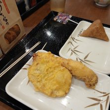 明太釜玉うどんの大。 かしわ、海老天🦐