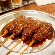 三カ月ぶりに ディープな酒場 名物デミカツ串 暑過ぎた ルービーすすんだ🍺