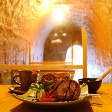 登り窯の中で一息 朝宮茶かな?ほうじ茶プリン チーズケーキ 和紅茶 夫注文