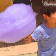 次男ちゃんの顔よりも大きいコットンキャンディ!