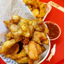 美味しいフライドチキン🍗&ポテト。お店の名前はキッキン・チキン - Kickin Chicken