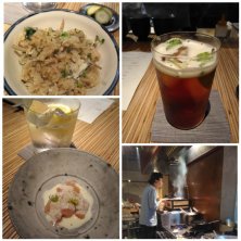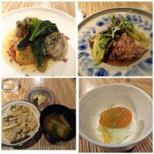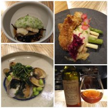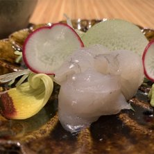 昨夜は夫と素敵な和食のお店へ 先月友達と行ってとても美味しかったので予約して帰ったのです 最初の一皿から美しい✨ 岩牡蠣とトマト、オカワカメ、コリンキーなどのさっぱり和え物 アクセントに煎ったえごま、食べられるお花もカラフルに散らしてあります 次のお椀は炙った鱸とヤングコーン ひげも椀だねに!シャキシャキ美味 お造りは炙ったイサキとヒラメ 店内で藁焼きファイヤーで炙ったのを出してくださいます 生ビールはサッポロのソラチ 次にグラスでワイン、ピエモンテのモスカートビアンコ 自然派です