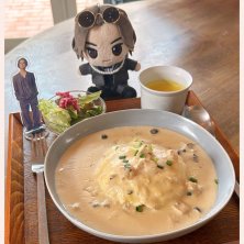 鶏肉ときのこの柚子胡椒クリームソースのオムライス