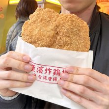 中華街の橫濱媽祖廟近くにある台湾唐揚げのお店です。 インスタばえする唐揚げです。女性の顔と同じくらいの大きさでよく顔と並べて写真を撮っています。味も美味しくスパイシーでカリカリの表面であと引く美味さ!!