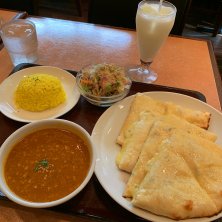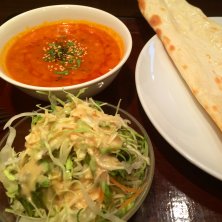 こんな時間ですが…ランチいただきます*:.。. ✳︎ダールカレーランチセット トマトベースのさらっとしたカレーは生姜やガーリック、その他たくさんのスパイスが入ってます♪ バターがたっぷり香るナンとの相性もバッチリです(*^^*)