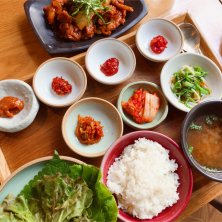 ソウルの森近くにあるおしゃれな人気定食屋さん、「おばあちゃんのレシピ」にて、サムパプ定食。 辛っ😳でもうまっ😆 美味しゅうございました!