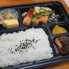今日のお昼ごはん。 *鶏の竜田揚げ弁当 ¥500 先日頼んだ2種のとんかつ弁当がとっても美味しかったので今日は鶏の竜田揚げ弁当を頼んで見ました❗こちらのお店は町の洋食屋さん的なお店で、今月から日替わりランチ弁当のデリバリーを始めたのですが、洋食屋さんとあってとっても美味しいです🥰来週もまた別のメニューを頼む予定です✨楽しみ😆