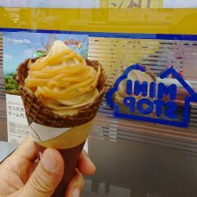 今日は暑かった‼️仕事帰りのバス待ちの間、プレミアム和栗モンブランソフトで涼みました。