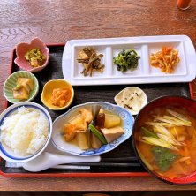 ひっつみと煮物など、野菜たっぷりの「らら定食」