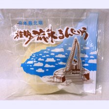 北海道稚内市 御菓子司 小鹿(こしか)の流氷まんじゅうのパッケージ付き。